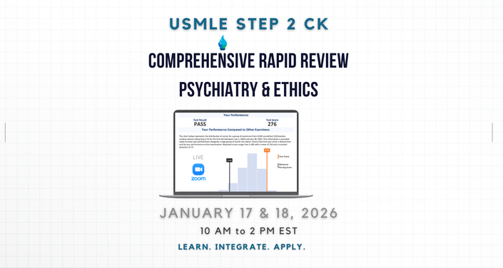 This two-day review covers how to tackle psychiatry questions on the USMLE: time-courses, closest distractors (eg, PTSD vs acute stress vs adjustment), medication toxicities that masquerade as new symptoms, and the safety/legal “next best step” moments that decide the entire question!